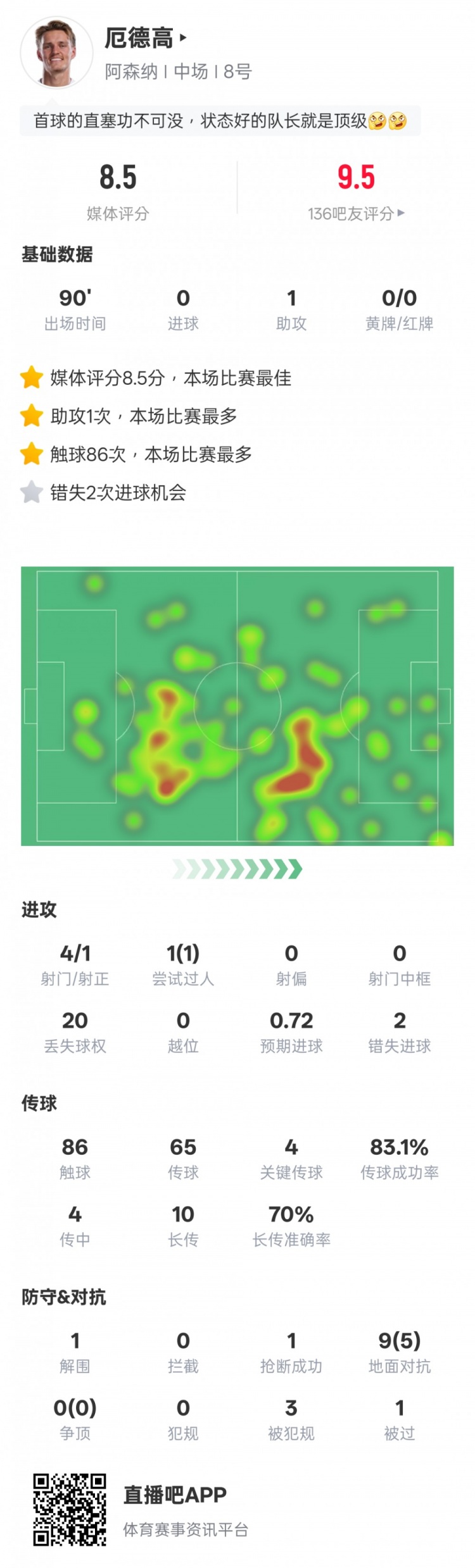 Trong trò chơi này, Odegao đã chơi toàn bộ trò chơi cho Arsenal và đã hỗ trợ 1. Arsenal chính thức tuyên bố rằng sau cuộc bỏ phiếu của người hâm mộ, Odegao đã được bầu làm cầu thủ giỏi nhất trong đội trong trò chơi này.